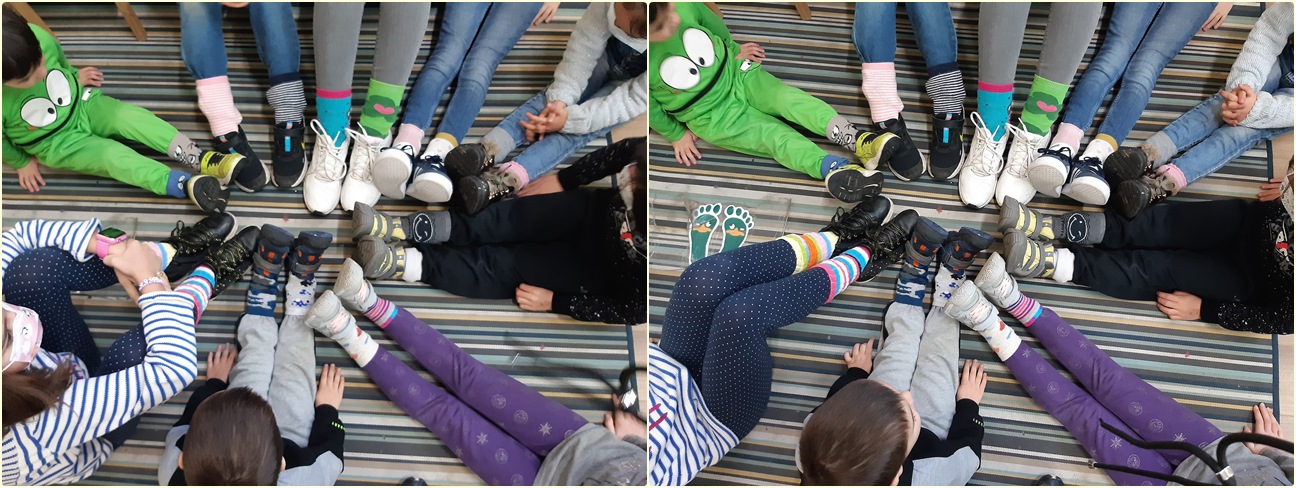 Miércoles: para ir bien conjuntados: calcetines desparejados por encima del pantalón ¡Mola mogollón!